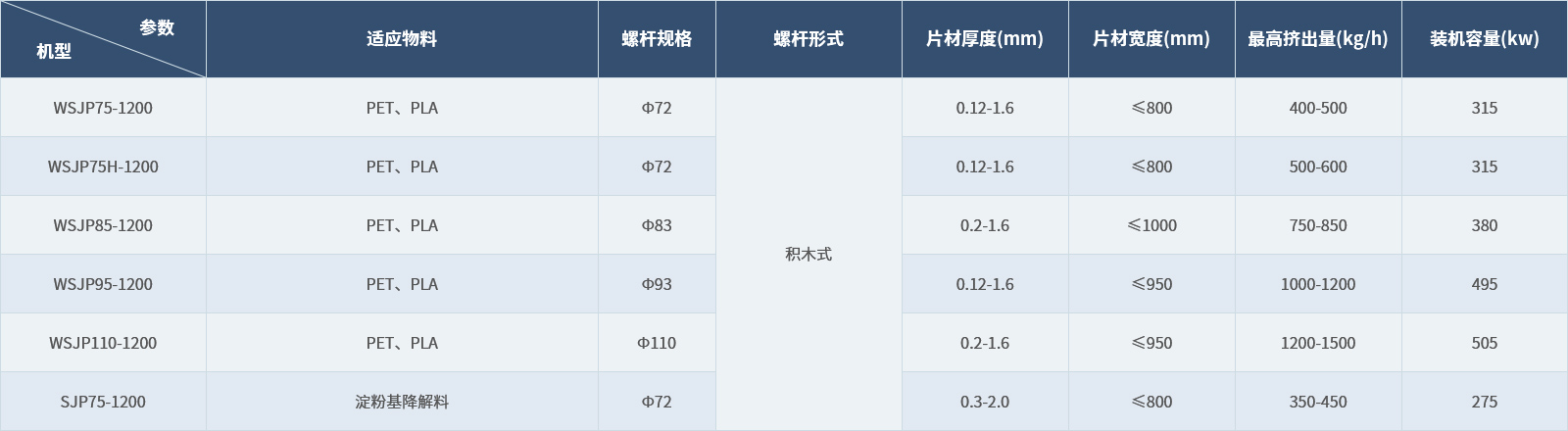 應用于PET. PLA片材的生產,無需預結晶干燥系統,并且調節用于二次料的生產,具備高童量,低能耗、優塑化的特點。